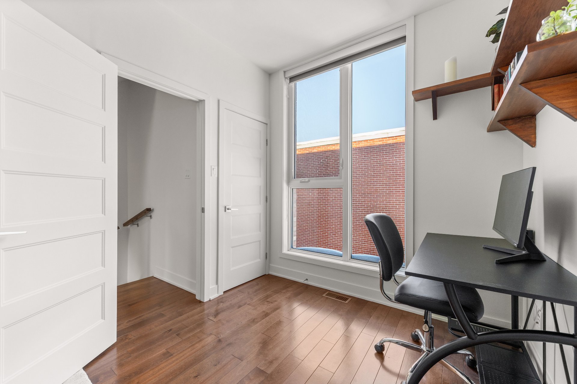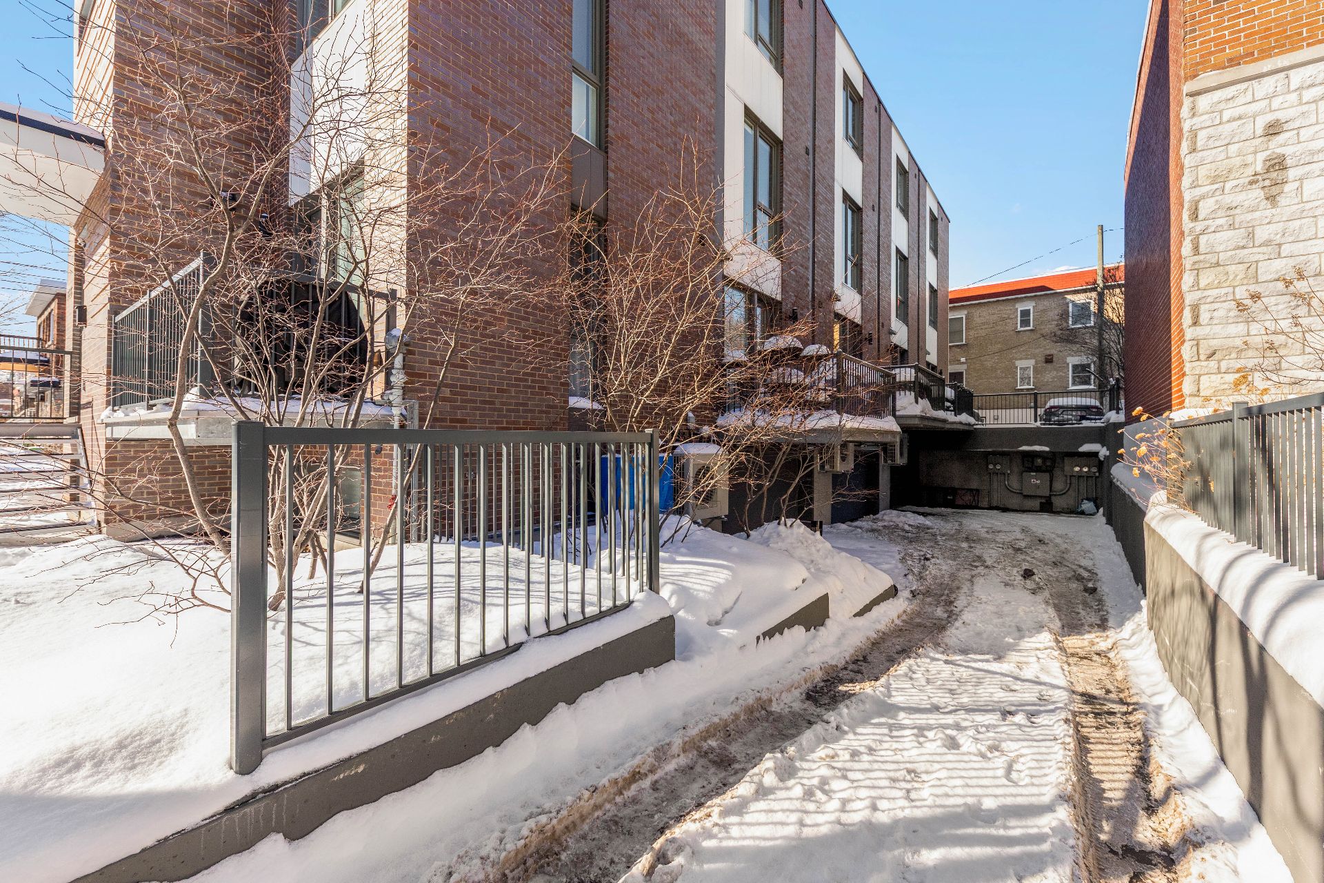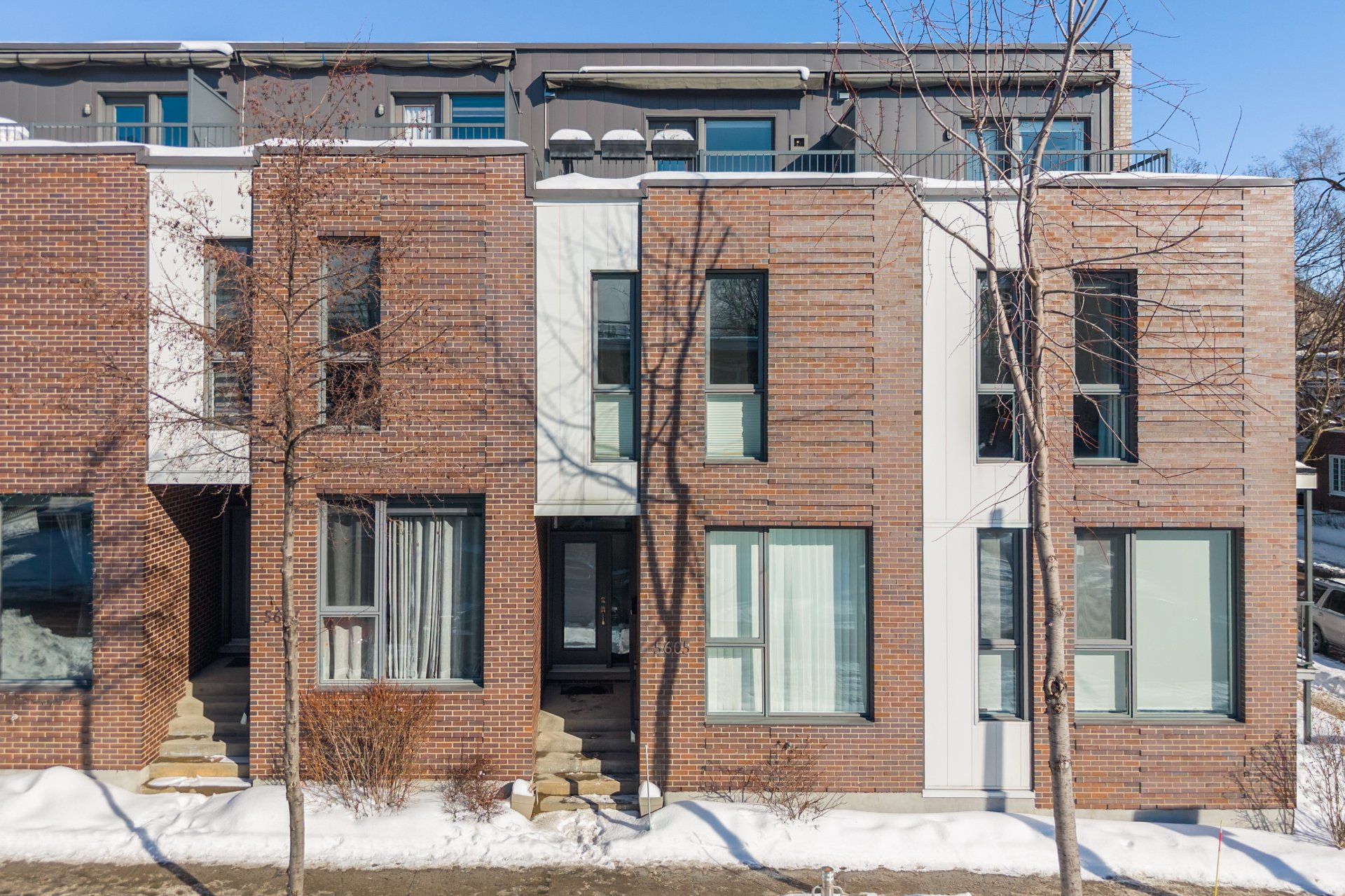 Built in 2017, this three-level property offers an incomparable urban lifestyle. The main floor (RDC) stands out with its stunning kitchen and bright living room opening onto a balcony. The middle level features two bedrooms and a full bathroom, while the top floor is dedicated to the primary suite, complete with a full bathroom and a private rooftop terrace. The basement makes no compromises, offering a garage and a space currently used as an office--perfect for working from home or as a workshop.Located near Parc Maisonneuve, it's an ideal setting for outdoor enthusiasts. Quality construction and modern design come together under one roof.
