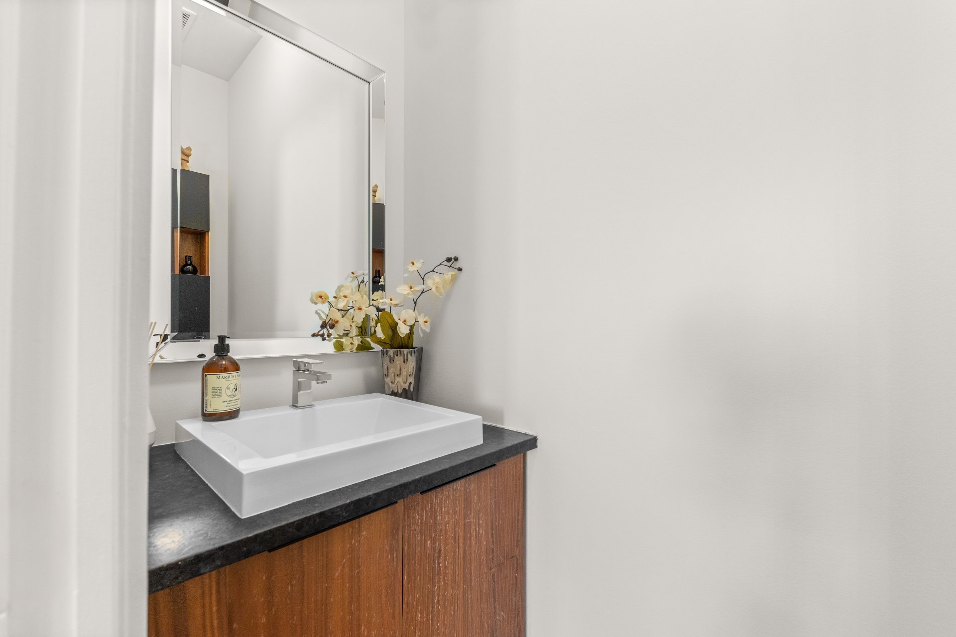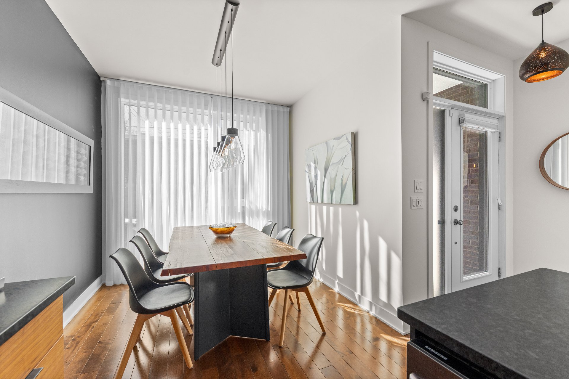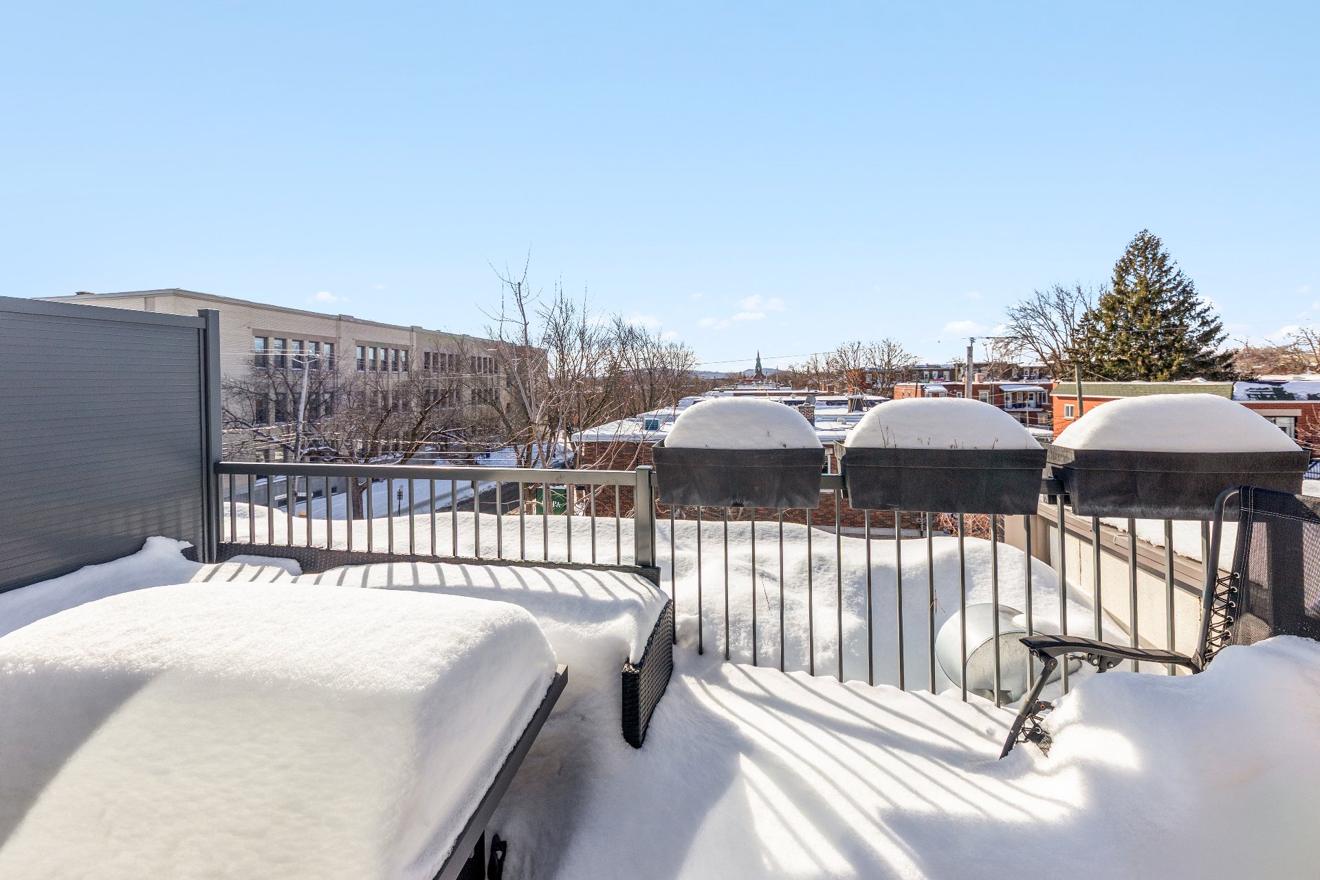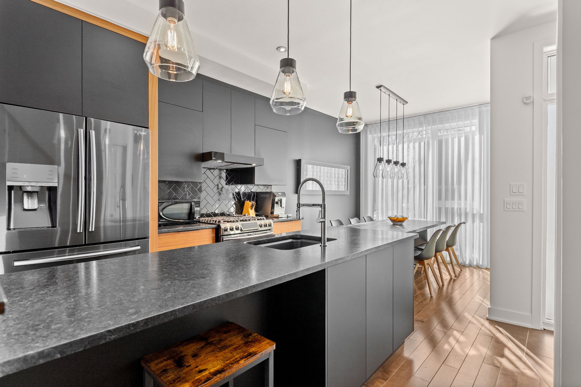 Built in 2017, this three-level property offers an incomparable urban lifestyle. The main floor (RDC) stands out with its stunning kitchen and bright living room opening onto a balcony. The middle level features two bedrooms and a full bathroom, while the top floor is dedicated to the primary suite, complete with a full bathroom and a private rooftop terrace. The basement makes no compromises, offering a garage and a space currently used as an office--perfect for working from home or as a workshop.Located near Parc Maisonneuve, it's an ideal setting for outdoor enthusiasts. Quality construction and modern design come together under one roof.